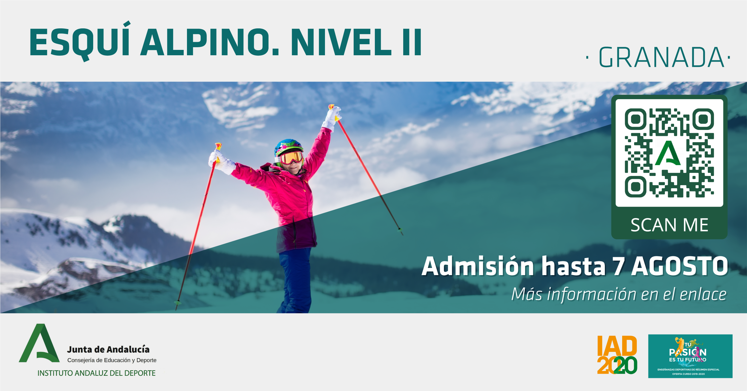 Más info aquí https://www.juntadeandalucia.es/organismos/educacionydeporte/areas/formacion-investigacion-medicina/ensenanzas-tecnico-deportivo/paginas/esqui-alpino-nivel-II-grado-medio.html o escaneando el código QR.