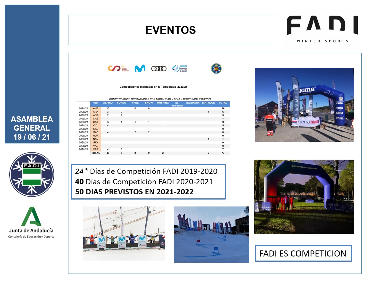 Para la temporada 2021-2022 que comenzaba en nieve el pasado 1 de junio y en hielo que comenzará el 1 de julio, tenemos grandes proyectos, con el CEEDA como motor y los programas de Tecnificación y Detección de Talentos como líneas de trabajo, sin olvidar un ambicioso calendario de competiciones de 50 días de carrera.
