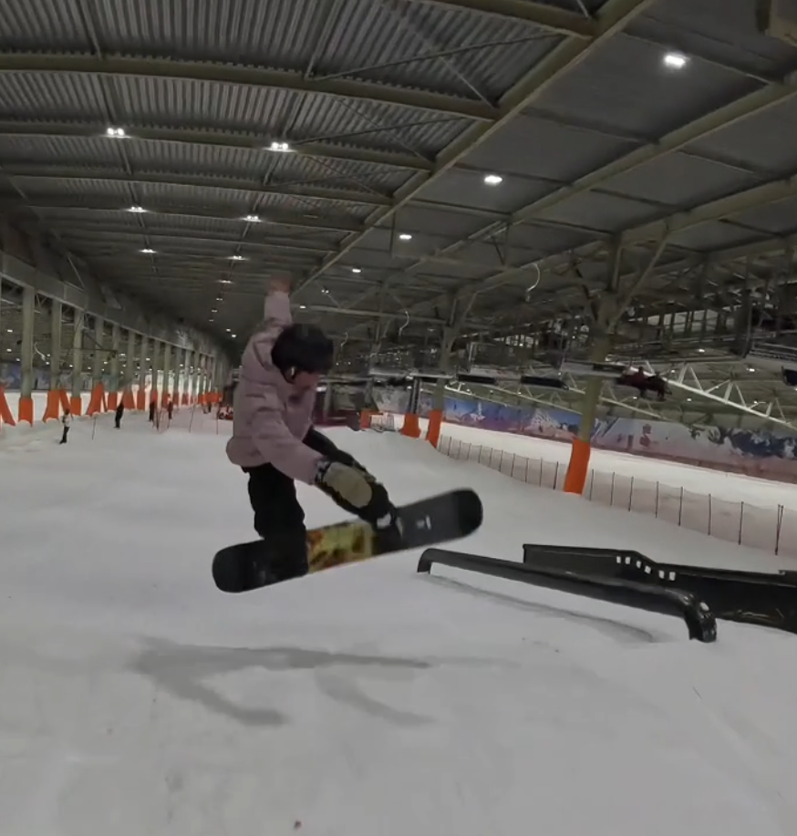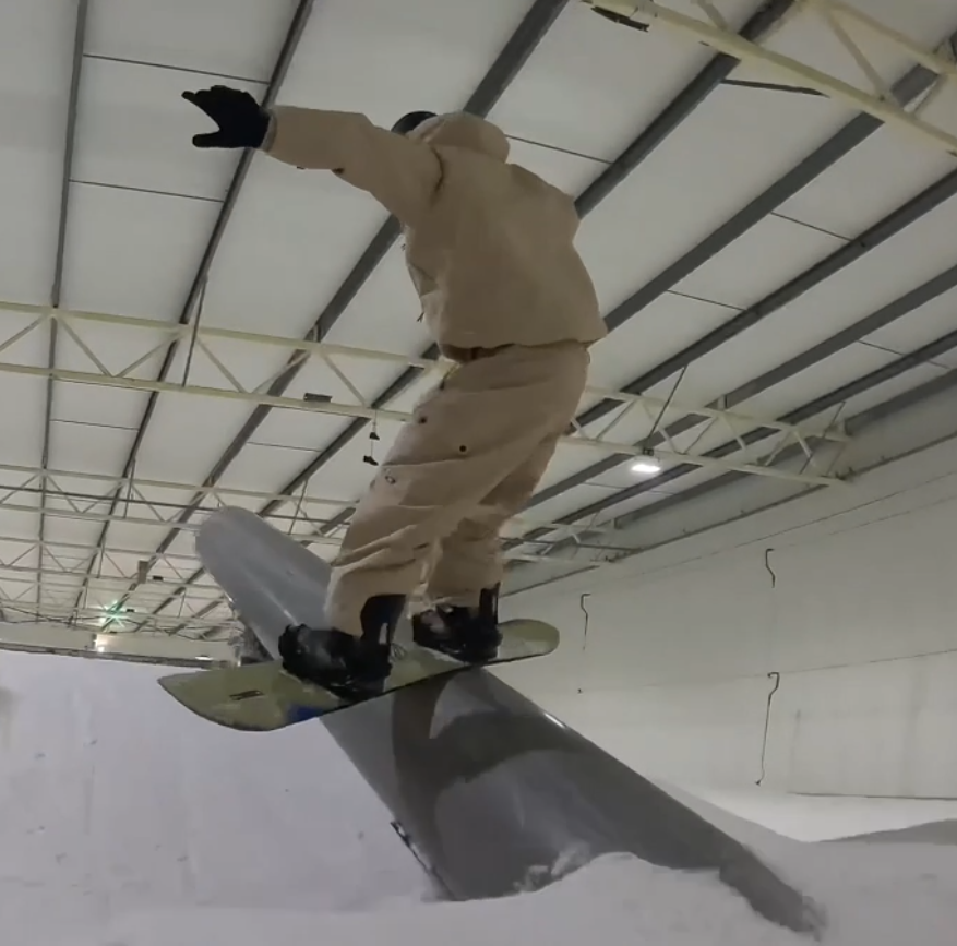 Las sesiones en Snowworld se enfocaron en el trabajo de railes y barandillas, elementos clave del Slopestyle. Precisión, equilibrio y un dominio técnico absoluto, son necesarios para encadenar los trucos de manera fluida.