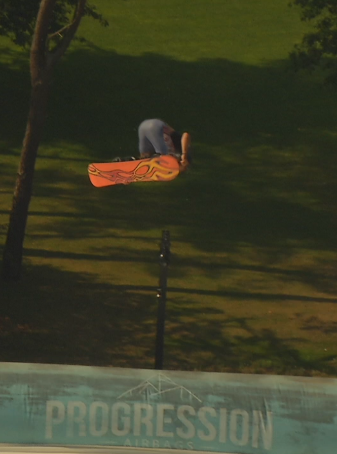 Durante las sesiones matutinas, los riders trabajaron en perfeccionar sus saltos y trucos más complejos, con un enfoque especial en mejorar la altura y la ejecución técnica. El Airbag permite experimentar sin las limitaciones del miedo a las caídas, lo que resulta clave para ganar confianza antes de probar estos movimientos en nieve real.